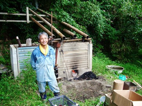 この釜で竹炭をやりだしてもう7年は経っただろうか、二つあった釜も穴が開いたりして一つはダメに成り、この焼いた釜は補修をして焼いているが、新しく釜を作らないと!