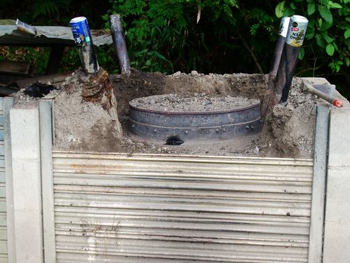 朝の8時頃から焼き始めて昼過ぎの14時ぐらいだったろうか?焼き上がりをしめす煙の色が変わってきた。よし火を止めようと決心し炊き口と煙突を鉄板と濡らしたタオルで空気を遮断する。この作業をきっちりとやっていないとせっかく焼いた炭が灰に変わってしまう。そして炊き口の鉄板に土をかぶせて空気が入らない様にし、少し水をかけて土を粘度状にして押さえる。